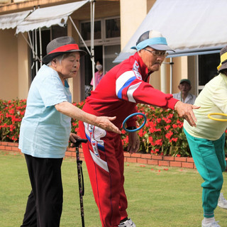紅白玉入れや輪投げリレーでは、各施設の大声援のもと得点を競いました。 “楽しみや生き甲斐に繋がる行事” を行い、入居者に喜んでもらうことはもちろんですが、他の施設との交流は “参加する職員のやる気や刺激” にも繋がっています。