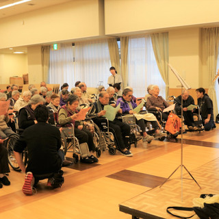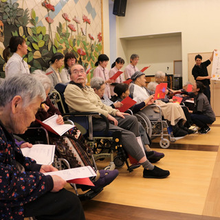 午後からは “みんなで楽しむ音楽会” の開幕です。ユニット「ゆり」「はぎ」のお年寄りによる合唱、ボランティアさんによるフルート演奏、若年で認知症を患った女性利用者の方は、妹さんとデュエットを披露してくださいました。皆さんこの日の為に、一生懸命練習を重ねてくれたとのこと。
