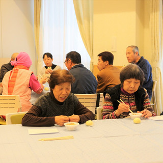 施設内のミニ菜園で、家族会の方に収穫していただいた “里芋” を大きな鍋で “芋煮” に 。手作りの “おいなりさん” や “おまんじゅう” 、一休み出来る喫茶コーナーも大好評でした。